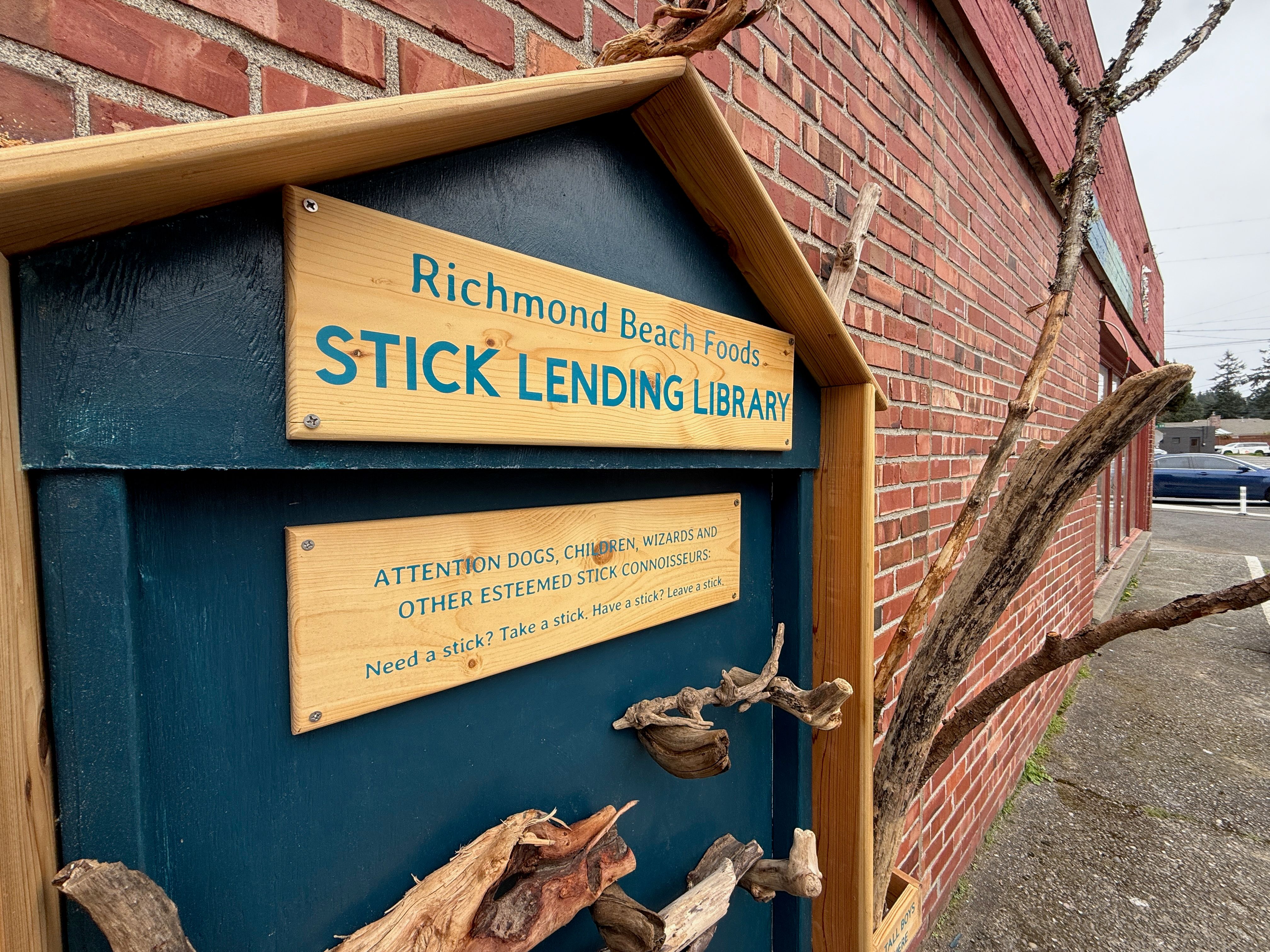 The Richmond Beach Foods Stick Lending Library, built on a lark by shop owner Norene Roberts. (The Osprey/David Mendez)
